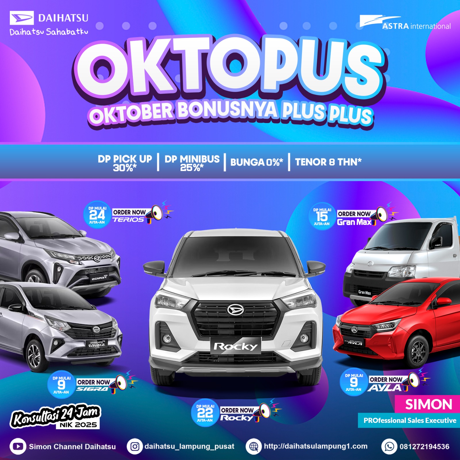 Daihatsu Lampung angsuran paling ringan, bunga rendah, diskon besar, Xenia, Terios, Luxio, Ayla, Sirion, Gran Max.